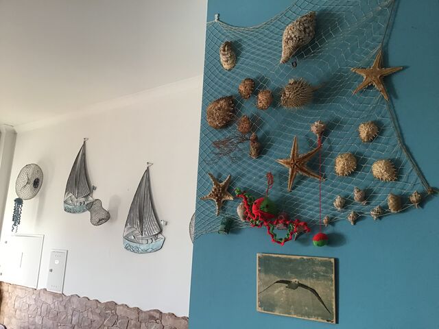 A pesca decora todo o espaço que segue a tradição de Tavira, a ligação ao mar e ao sol está ligado ao melhor da costa algarvia.
